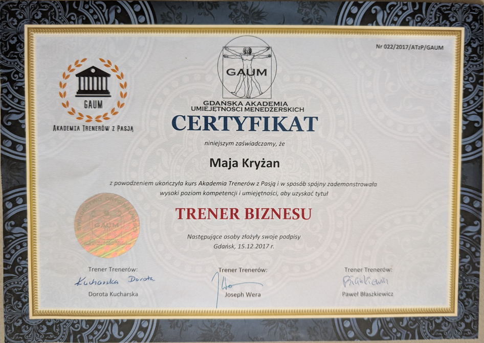 GAUM, Gdańsk Międzynarodowy CertyfikatTrenera Szkoleń